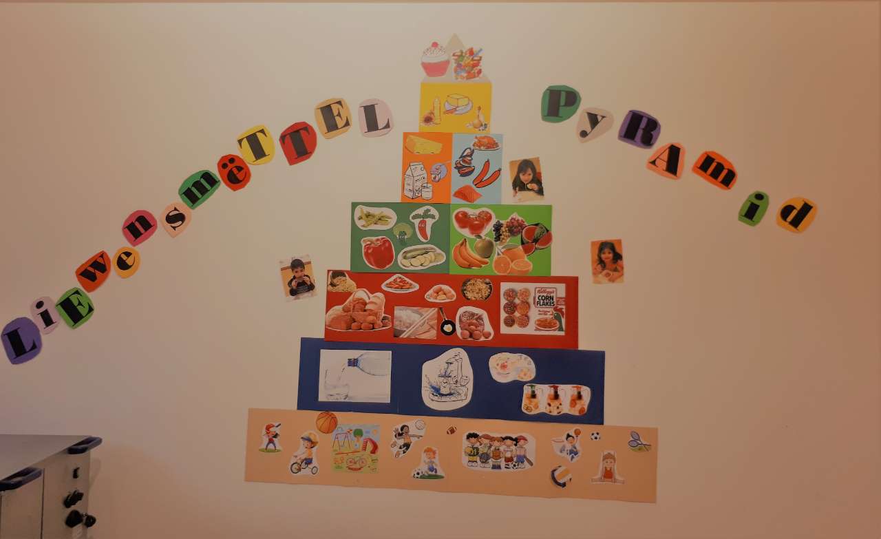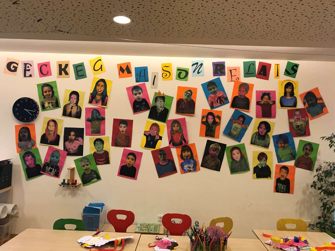Chaque enfant qui est inscrit à la Maison Relais est affiché sur le mur , également le personnel d'encadrement .