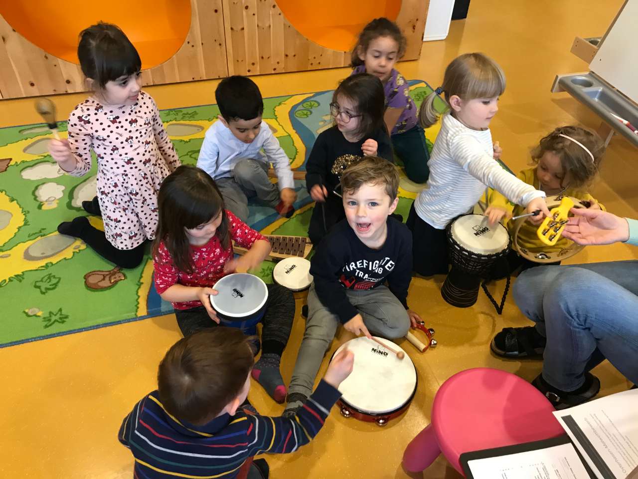 | Ziele (siehe z.B. Rahmenplan) | - Nolauschteren - Säin Tour ofwaarden - Verschidden Museksinstrumenter kenneléieren - Éischten Kontakt mat Museksinstrumenter |