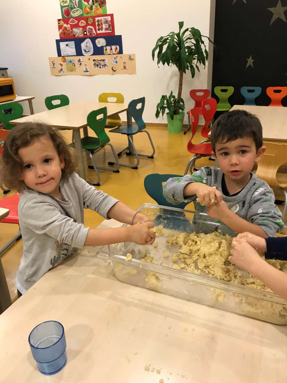 | Ziele (siehe z.B. Rahmenplan) | Zutaten benennen Goûten ennerscheeden (séiss, batter,...) Motorik a Präzisioun e Rezept befollege léieren Bakformen erkennen a benennen |